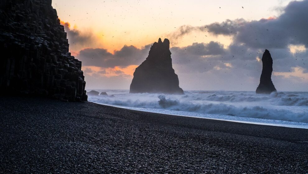 Admira la belleza salvaje de las playas de arena negra, con columnas basálticas impresionantes y el océano Atlántico golpeando con fuerza esta costa única.