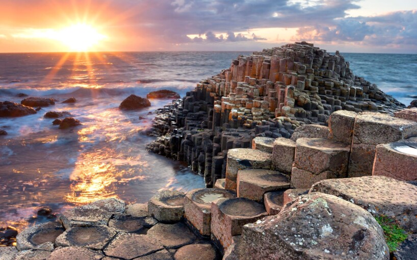 Esmorzar a l’hotel. En autocar, iniciarem la ruta cap a la Costa Nord del país. Arribarem a la famosa “Giant Causway” o Calçada del Gegant, paratge únic format per més de 40.000 columnes basàltiques hexagonals que s’endinsen al mar com si fossin les restes d’un antic camí gegantí. Segons la llegenda, és el camí que el gegant irlandès Fionn, en lluita amb el gegant escocès Benandonner, va construir per arribar a Escòcia. La història acaba quan Benandonner destrueix aquest camí, i el que avui en dia veiem són les restes del que va quedar. A més, descobrirem les explicacions geològiques que expliquen com, fa milions d’anys, una erupció volcànica va donar forma a aquesta estructura espectacular. Podrem caminar per damunt d’aquests blocs. Tot seguit, farem una parada fotogràfica al Castell de Dunluce, una de les ruïnes més dramàtiques i fotogèniques d’Irlanda, suspesa al cim d’un penya-segat que cau sobre l’oceà. Aquest antic castell medieval, envoltat de llegendes de cavallers i naufragis, ens ofereix una vista impressionant de la costa nord i és un lloc perfecte per captar la força i bellesa del paisatge irlandès. Dinar. Continuació del nostre recorregut cap a Derry, la ciutat emmurallada on les llegendes i la història conflueixen en un entorn màgic. Visitarem aquesta ciutat, considerada una de les més boniques i històriques d’Irlanda del Nord. Veurem l’exterior del seu ajuntament, el Guildhall, l’edifici neogòtic i icona de la ciutat. Seguirem endinsant-nos a les seves muralles que donen protecció al centre històric. Veurem els seus carrers més típics i coneixerem el barri de Bogside, escenari del “Diumenge de sang” (30 de gener de 1972) on 13 homes i nens no armats van ser assassinats a trets per policies britànics després d’una manifestació pels drets civils dels catòlics. Els murals d’aquest barri ens mostraran aquests conflictes. A l’hora convinguda, trasllat a l’hotel Express by HI Derry 3* o similar. Sopar i allotjament.